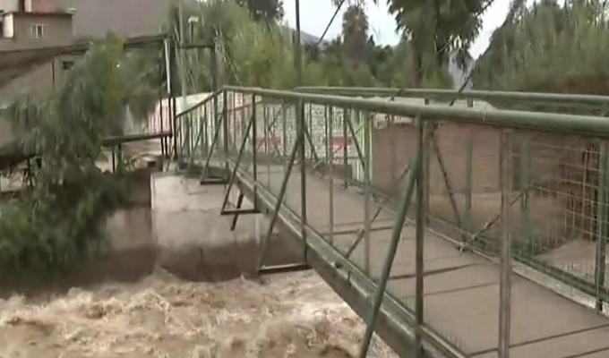Chosica: puente peatonal en peligro por aumento del caudal del río Rímac