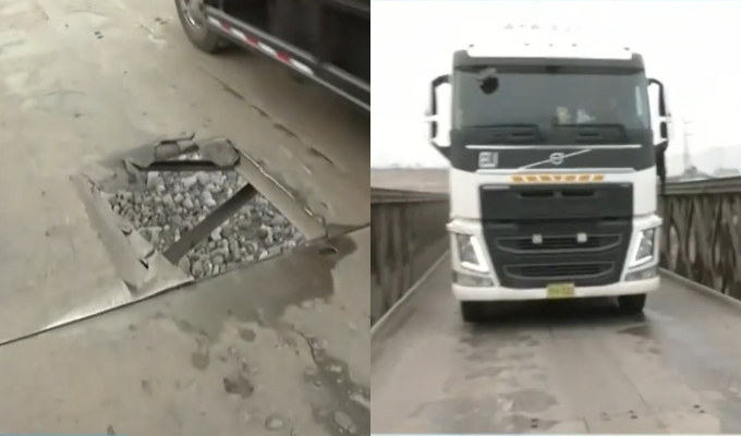 Además las placas de acero se encuentran rajadas y rotas por falta de mantenimiento. El puente provisional es de un solo carril y los conductores deben esperar para poder pasar en ambos sentidos por la estructura.
