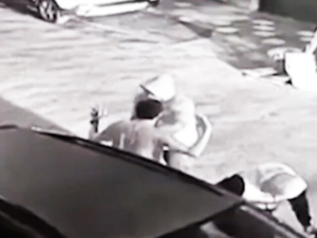 Las cámaras de seguridad de la zona captaron cuando ambos ladrones encapuchados interceptan a su víctima y comienzan a revisar sus pertenencias en busca de objetos de valor.
