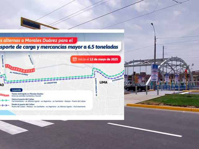 Desde este lunes 12 de mayo de 2025, el tránsito de vehículos de carga que superen las 6.5 toneladas queda restringido en un tramo de la avenida Morales Duárez, en el Callao. Esta disposición, establecida por el Ministerio de Transportes y Comunicaciones (MTC), abarca el tramo entre las avenidas Elmer Faucett y Néstor Gambetta y estará vigente hasta el 31 de mayo de 2026. La medida forma parte del plan de mejoramiento vial vinculado a la futura operación del nuevo Aeropuerto Internacional Jorge Chávez.