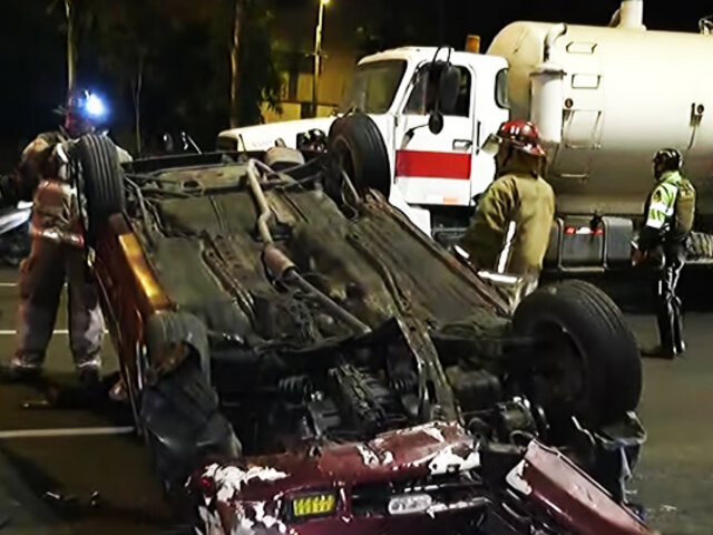 En el distrito de Surco, en la avenida Javier Prado, justo al frente del centro comercial Jockey Plaza, a metros del Derby un auto volcó aparatosamente en horas de la madrugada.