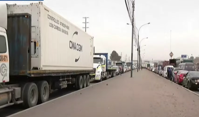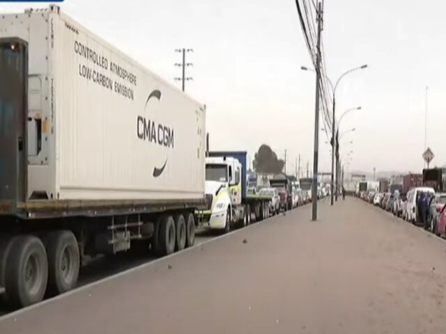 Decenas de vehículos se encuentran varados desde hace varias horas por un intenso congestionamiento vehicular que se registra todos los días en la Av. Néstor Gambetta a la altura del terminal pesquero en el Callao.
