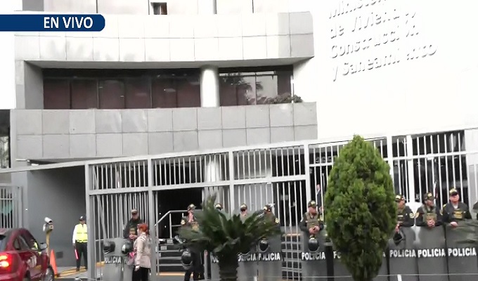 Desde tempranas horas de este lunes, un contingente policial se desplegó en las inmediaciones del Ministerio de Vivienda, Construcción y Saneamiento, ubicado en la cuadra 36 de la avenida República de Panamá, en San Isidro, ante el anuncio de una protesta encabezada por pequeñas y medianas empresas (MYPEs) del sector construcción y grupos familiares.