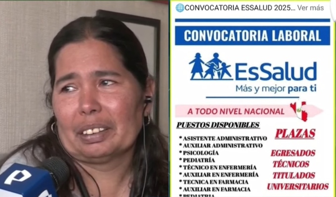Una mujer denunció que fue víctima de estafadores a través de una falsa convocatoria de trabajo en Facebook. Los delincuentes se hicieron pasar por personal de Essalud y le pidieron el pago anticipado de S/1180 soles.