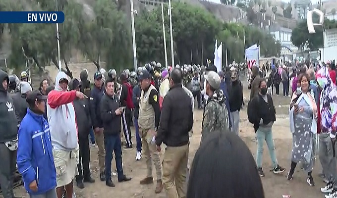 La protesta se intensificó cuando los pescadores advirtieron la llegada de un grupo de civiles encapuchados y con gorras. “No son pescadores, son delincuentes contratados por el alcalde para sacarnos a la fuerza”, acusaron. Ante esta situación, se desplegó un fuerte cordón policial para evitar enfrentamientos. Los ánimos se alteraron cuando los manifestantes intentaron acercarse a este grupo, al que señalan como ajeno a la comunidad chorrillana.