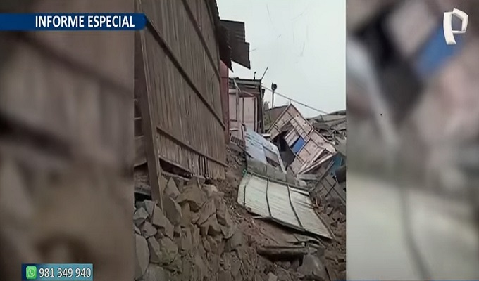 Las consecuencias del sismo de magnitud 6.1 siguen registrándose. En la zona alta del asentamiento chalaco Ampliación Hijos de Villa del Mar (Mi Perú) tres casas quedaron reducidas a escombros cuando rocas desprendidas del cerro cayeron sobre ellas.