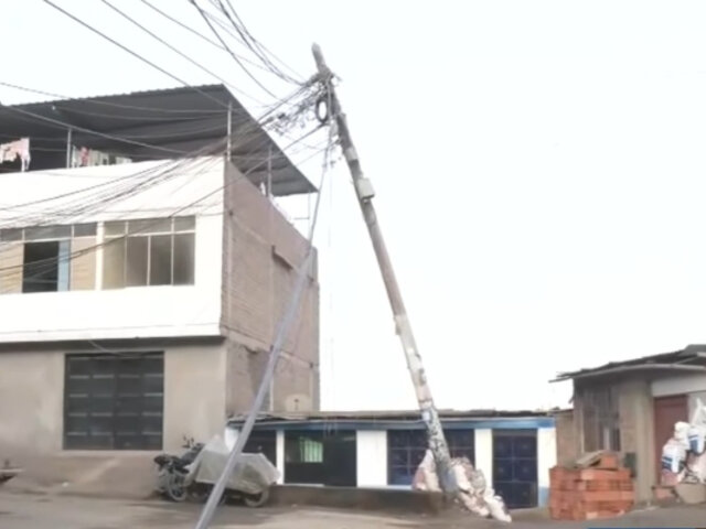 Asimismo, han jalado los cables a esta estructura la cual ha cedido debido a la tensión. Los residentes han amarrado los cables colgados ya que un vehículo pasó y movió el poste tras jalar los cables.
