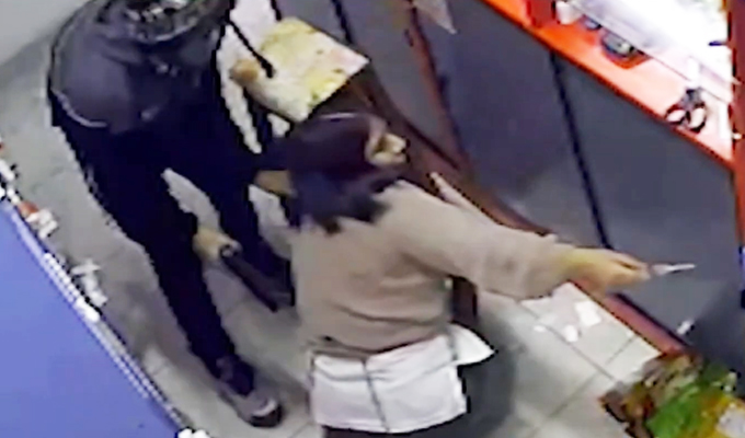 La trabajadora accedió a la aplicación de una inyección y le abrió la puerta del negocio. El delincuente, que estaba todo el tiempo hablando por celular, le abrió la puerta a su cómplice que entró con un arma de fuego y obligó a la trabajadora a tirarse al piso.