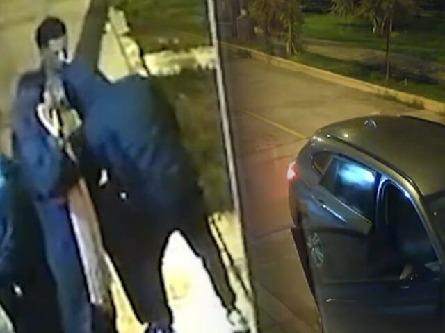 Una cámara de seguridad del lugar, captó cuando las víctimas estaban esperando que les abran la puerta para ingresar a un edificio.