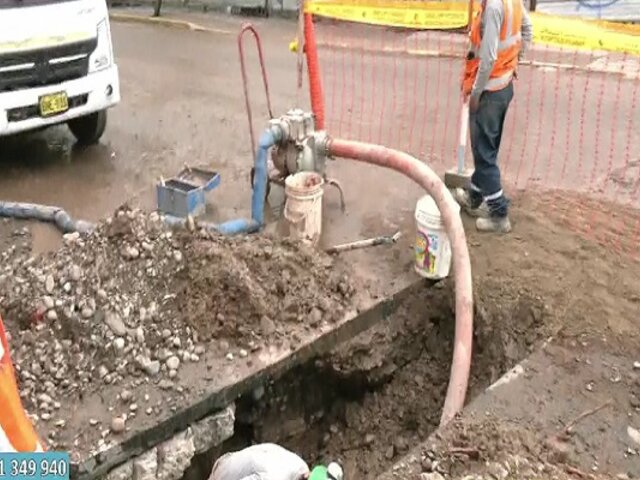 Rotura de tubería matriz provoca aniego y caos vehicular en Miraflores