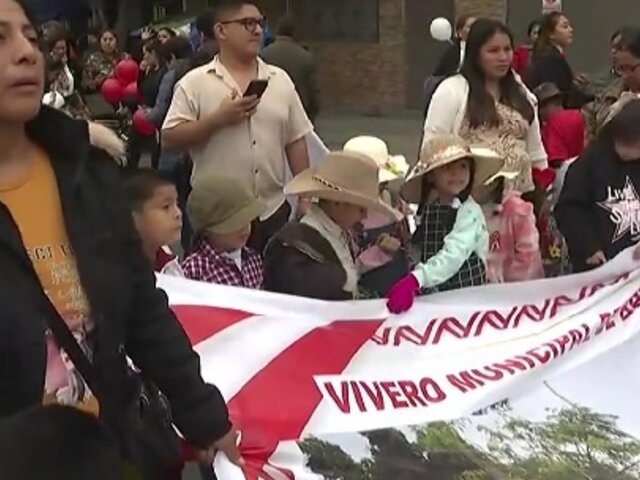 Una de las escenas más llamativas fue protagonizada por los niños del nivel inicial, quienes marcharon acompañados de sus familiares, decorados con elementos tradicionales y trajes típicos del Perú.