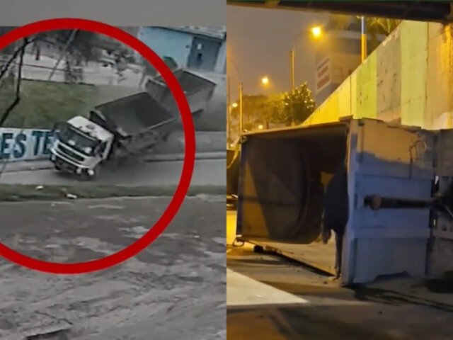 Un camión de carga perdió el control y cayó violentamente desde un jardín a la vía del Puente El Sol, en el distrito de Villa El Salvador. Cámaras de seguridad captaron al vehículo circulando a alta velocidad por la avenida El Sol.