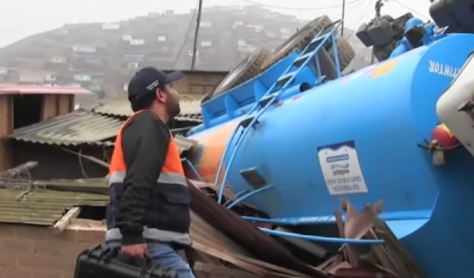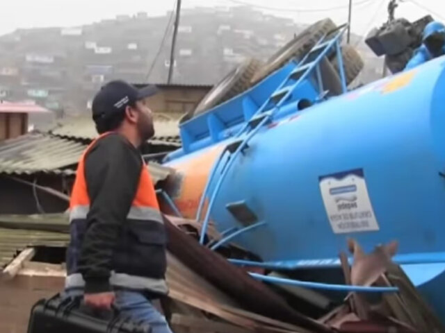 Un camión cisterna que abastecía de agua a la Asociación de Vivienda Belaunde Terry se precipitó desde lo alto de un cerro en Puente Piedra la tarde del viernes 19 de julio, impactando contra una vivienda.