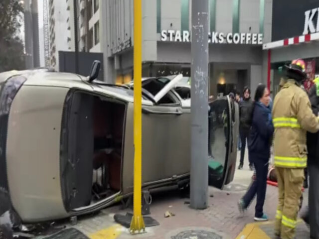 Se habría pasado la luz roja del semáforo: auto termina volcado en la Av. Arequipa