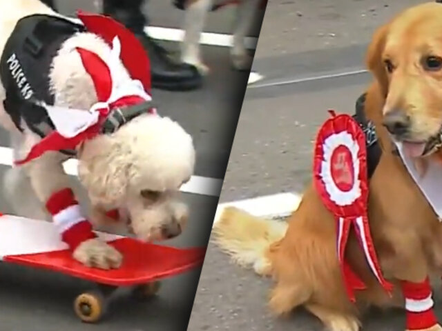 Nos referimos a los perritos de la Policía Nacional del Perú que suelen destacarse en el desfile militar con sus habilidades especiales, acrobacias y trucos, además de sus vistosos uniformes con los colores patrios.