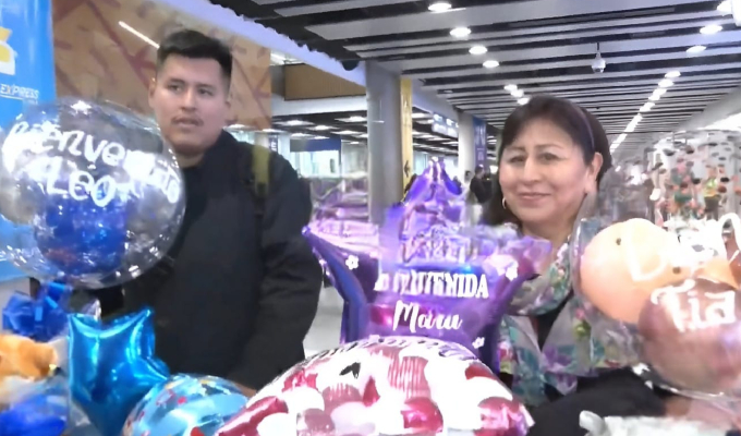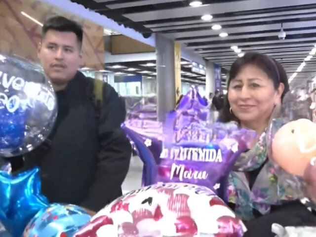 La familia Soto llegó de viaje desde Italia luego de varios años y fueron recibidos con globos y llenos de emoción. "He venido la última vez en diciembre de 2022, mi motivo principal es ver a mi madre que tiene 92 años", señaló Maru.