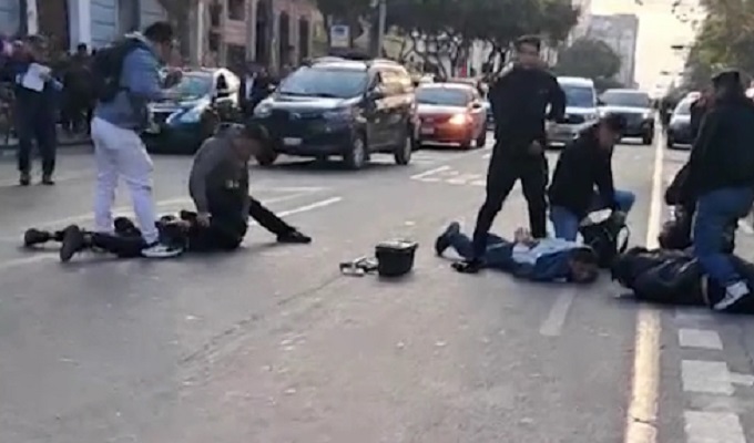 Policías vestidos de civil capturaron a presuntos delincuentes tras un tiroteo en el Centro de Lima.