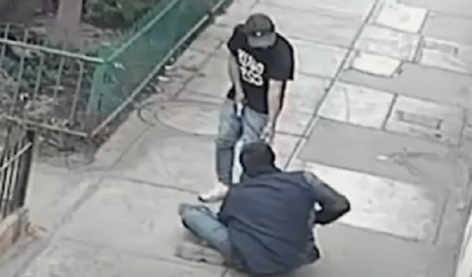 El ataque quedó registrado por las cámaras de seguridad. En las imágenes se observa cómo la víctima entrega el equipo y el sujeto huye a toda prisa.