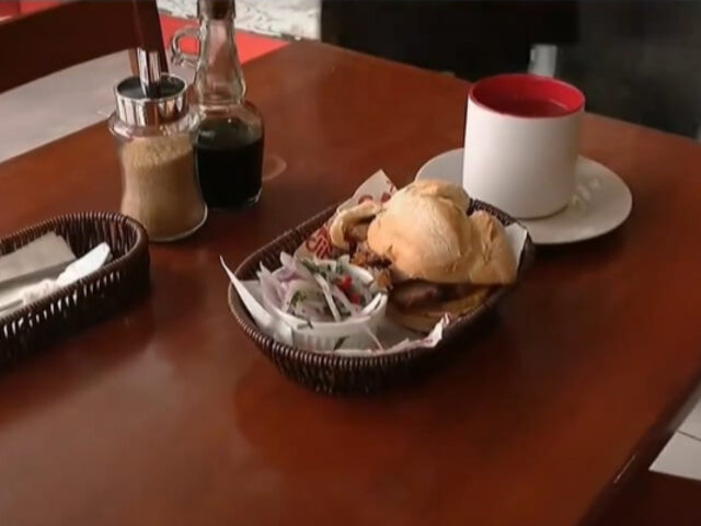 Por ello, un equipo de Buenos Días Perú llegó hasta un concurrido negocio donde se vende este popular desayuno en el distrito de Comas, para ver cómo es la preparación. Primero se abre el pan, se pone camotes fritos en la base, luego se coloca el chicharrón encima y se le agrega sal.