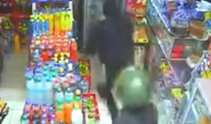 Las cámaras de seguridad captaron cuando los ladrones se apoderaron del dinero de la caja registradora y al escapar realizaron varios disparos.