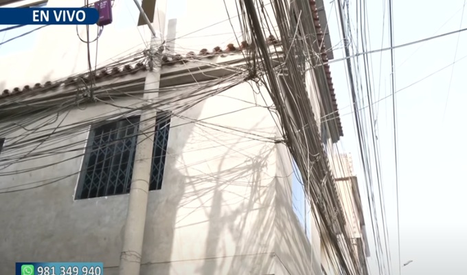 En la zona de Canto Grande, en San Juan de Lurigancho, los vecinos viven rodeados de una maraña de cables que se acumula sobre postes y fachadas. El cableado en desuso no fue retirado y, con el tiempo, se convirtió en un nudo que incluso invade ventanas y puertas.