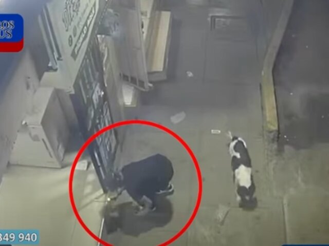 Las cámaras de seguridad registraron el momento en que los sujetos llegan caminando por la avenida María Parado de Bellido. Uno de ellos observa el interior del negocio, da el visto bueno, y segundos después el otro deja un explosivo con la mecha encendida. La detonación sacudió la zona.
