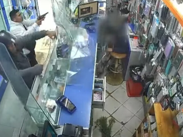 Cámaras de seguridad captaron el preciso momento en que delincuentes armados asaltaron con violencia una tienda de celulares. El hecho ocurrió en la zona de Nueva Esperanza, en el distrito de Villa María del Triunfo.