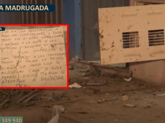 En el lugar fueron halladas tres cartas con mensajes xenófobos. Una de ellas advertía: “Esto es una advertencia a todos los venezolanos y para todos los que están extorsionando y matando a la gente de las empresas y negocios en general. A las empresas que dan trabajo a los venezolanos también les va a pasar lo mismo. Esto va para los que alquilan casa. Justicia popular”.