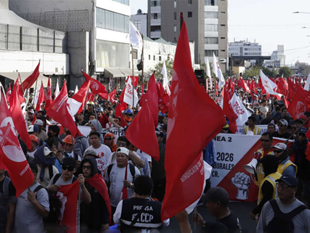 03:30 p.m. Distintos gremios de Construcción Civil y el Sutep se unieron a las movilizaciones de transportistas, se dirigen al Congreso de la República.