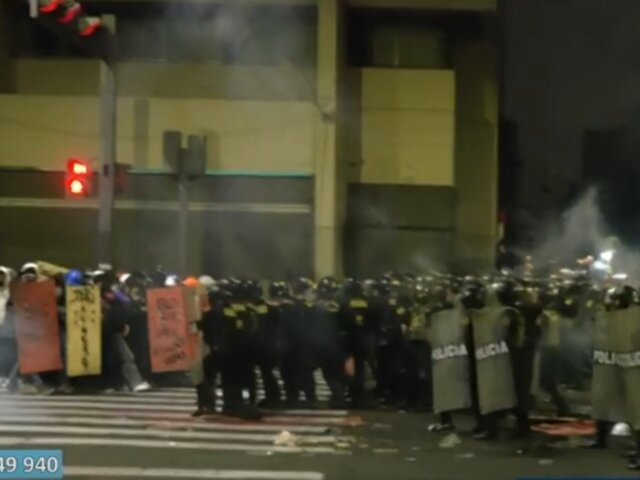 El primer choque ocurrió en los exteriores del Congreso de la República, cuando un grupo de personas intentó derribar las rejas de seguridad que los separaban del Parlamento y de los agentes del orden. Los manifestantes lanzaron objetos y prendieron fuego a un pequeño sector de la vía, lo que provocó la respuesta inmediata de la policía con bombas lacrimógenas.