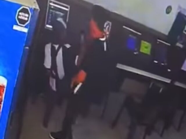 Según las imágenes de las cámaras de seguridad, un delincuente armado ingresó al local a las 4:29 p. m. y atacó a uno de los clientes para robarle el celular. Cuando la víctima intentó resistirse, el sujeto le disparó sin dudar.