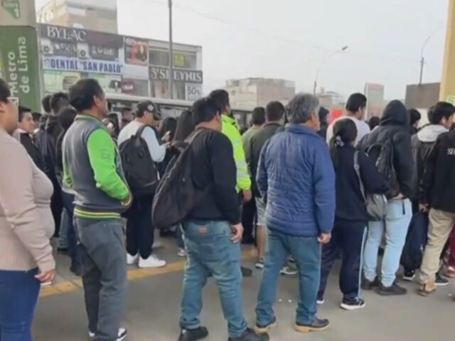 Largas filas de pasajeros se registran en la estación del Metro de Lima en el distrito de San Juan de Lurigancho ante la falta de unidades de transporte público.