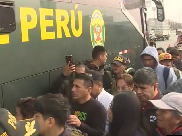Puente Nuevo: buses de la PNP trasladan a usuarios tras paro de transportistas