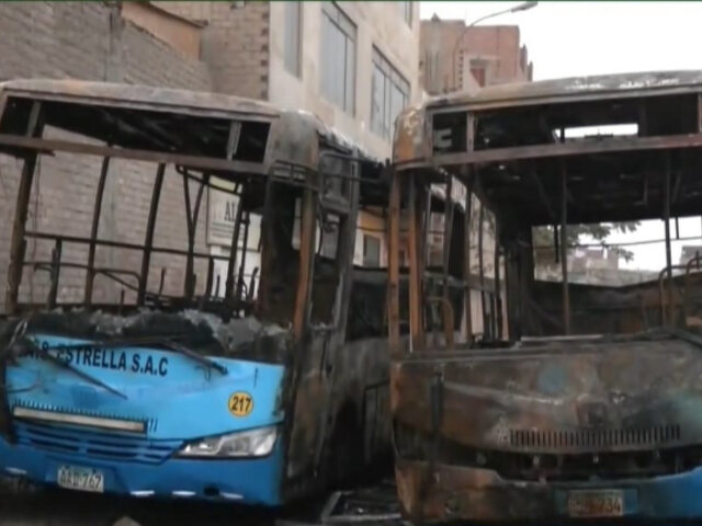 Dos buses de la empresa 'Estrella' fueron incendiados por presuntos extorsionadores. El hecho ocurrió esta madrugada en el cruce de las avenidas Izaguirre con Bertello, en el distrito de San Martín de Porres.