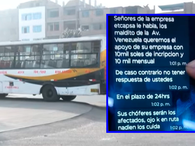 Una empresa de transporte público que opera en Lima Este paralizó gran parte de sus operaciones luego de que sus directivos y trabajadores recibieran amenazas extorsivas por parte de una presunta organización criminal. Los mensajes, enviados a teléfonos móviles, exigen el pago de 10 mil soles como inscripción inicial y otros 10 mil soles de manera periódica a cambio de permitir que los buses continúen circulando con normalidad, lo que ha generado temor entre los conductores y una suspensión casi total del servicio.