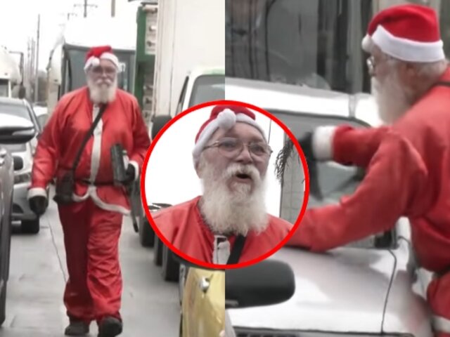 Cada mañana, durante la temporada navideña, Roberto se coloca el traje de Papá Noel y se instala en el paradero Casa Blanca, en el distrito de Chorrillos, donde limpia parabrisas a quienes se desplazan hacia el sur de Lima.