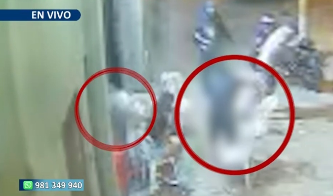 Las imágenes muestran a dos sujetos que llegan a bordo de una motocicleta. Uno de ellos desciende del vehículo, se acerca cautelosamente a un grupo de personas que conversaba en la puerta de un inmueble y abre fuego de manera directa. El atacante vestía una casaca con la palabra “Policía” en la espalda, lo que habría facilitado que se aproximara sin levantar sospechas.