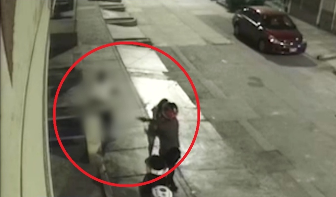 Cámaras de seguridad captaron el momento en que un hombre a bordo de una moto lineal mantenía una discusión con una inquilina del cuarto piso de una vivienda multifamiliar, según indicaron los vecinos.