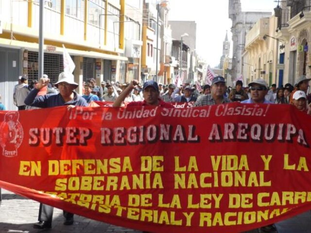 Cientos de docentes del Sutep bloquearon carreteras en el sur del país