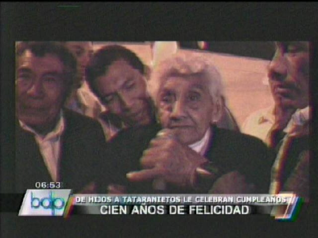 Junto a sus 10 hijos, 50 nietos y 20 tataranietos, doña Juana Siguas celebró su cumpleaños número cien en Pisco. Con la vitalidad de una jovencita pasó toda la noche bailando y disfrutando de sus seres queridos que no dejaban de engreírla en todo momento.