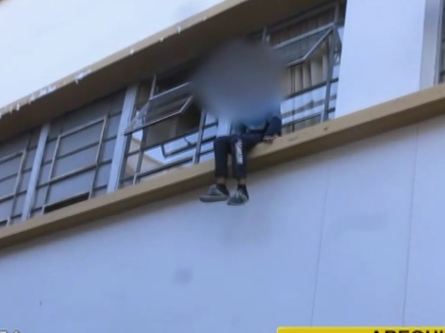 Un joven de 16 años que padece de esquizofrenia intentó lanzarse del segundo piso del hospital Honorio Delgado. Tras varios minutos, el padre del adolescente logró salvarlo.