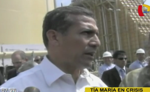 El presidente Ollanta Humala Tasso lamentó la muerte de un agricultor durante la protesta contra proyecto minero Tía María, y llamó a la calma a la población. En tanto, el ministro del Interior, José Luis Pérez Guadalupe, aseguró que continuarán con el diálogo con los dirigentes antimineros.
