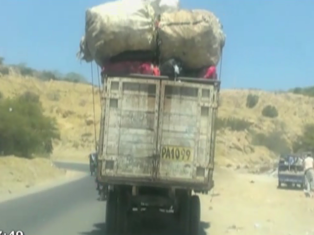 WhatsApp: camión sin placa transita con exceso de carga en Talara