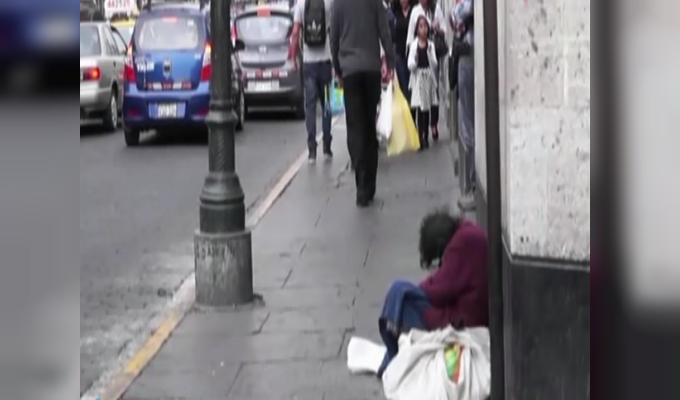 Aurelia Quispe 70 años pasa sus días sentada en el suelo de las calles de Arequipa pidiendo limosna o alimento para poder sobrevivir. Cualquiera pensaría que esta mujer no tiene ningún familiar que la proteja, sin embargo, las autoridades informaron que tiene cuatro hijos de 40 a 45 años.