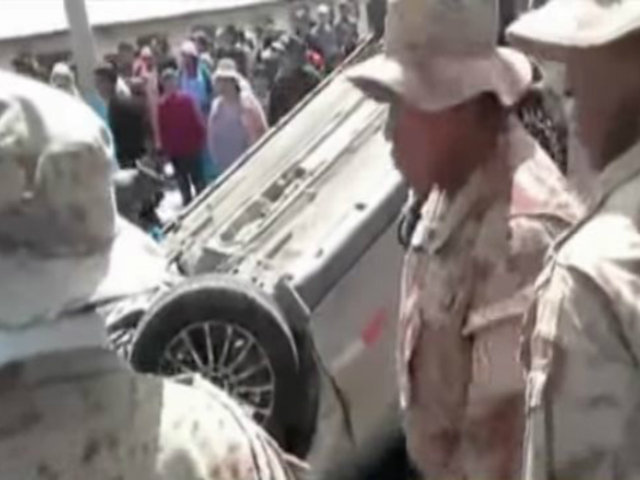 Cuatro miembros del Ejército, en aparente estado de ebriedad, hicieron noticia en Puno pues su vehículo quedaró con las llantas hacia arriba luego que el conductor de la unidad chocara contra un auto estacionado en la vía pública de Juliaca.