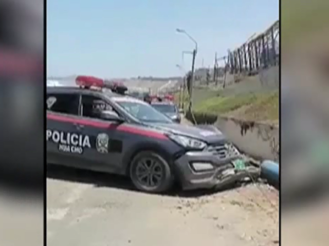 Llanta del lado izquierdo del vehículo policial se habría reventado, provocando que el conductor pierda el control de la unidad.