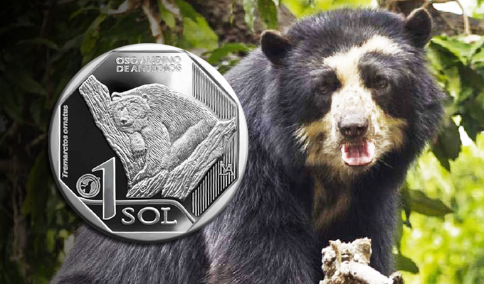 El primer protagonista de la nueva Serie Numismática es oso andino de anteojos que está en peligro de extinción debido a que los agricultores lo consideran una amenaza.