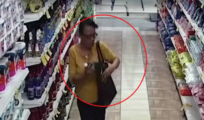 Cómo se observan en las imágenes, la mujer de aproximadamente 50 años ingresa por el pasadizo donde se encontraban los productos de limpieza y al creer que nadie la veía, mete a su bolso los artículos. Luego coge una bolsa de detergente y se dirige a la caja para no levantar sospechas.