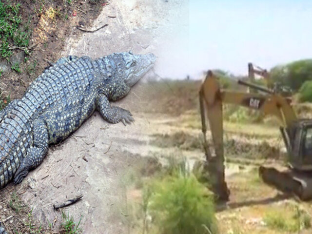 Tumbes: obreros encuentran cocodrilo en una quebrada
