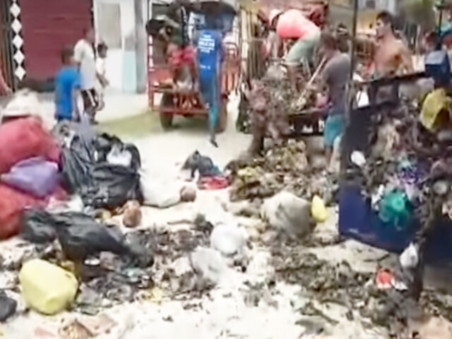 Vendedores del mercado de Belén juntaron la basura que estaba amontonada en la calle para exigir con esta medida al alcalde que se recoja los desperdicios de la ciudad.